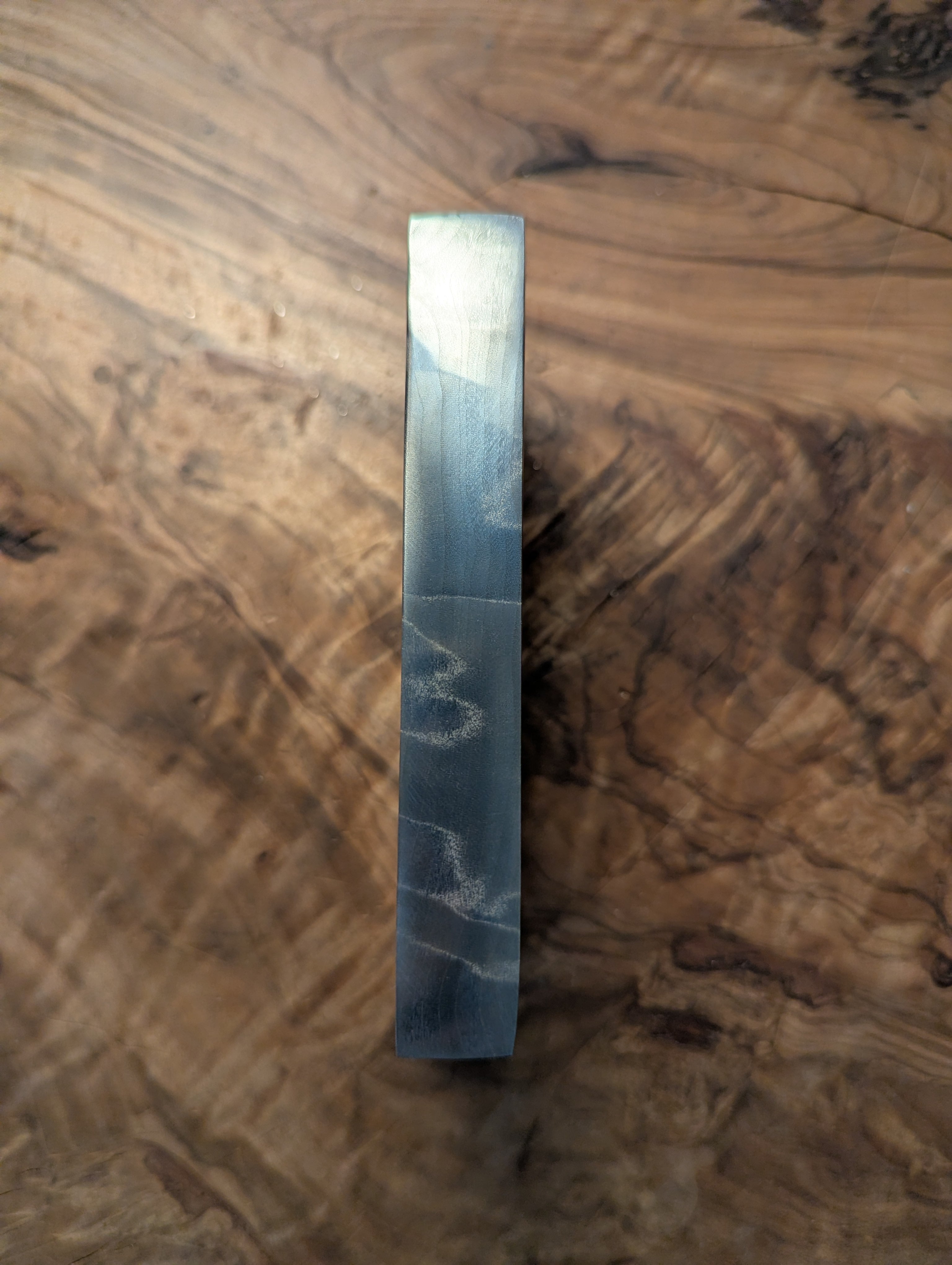 木材(トチ)に金属を含浸させた材料です。木目と杢が銀色に強調されており、光を反射してギラギラとダイナミックに輝きます。