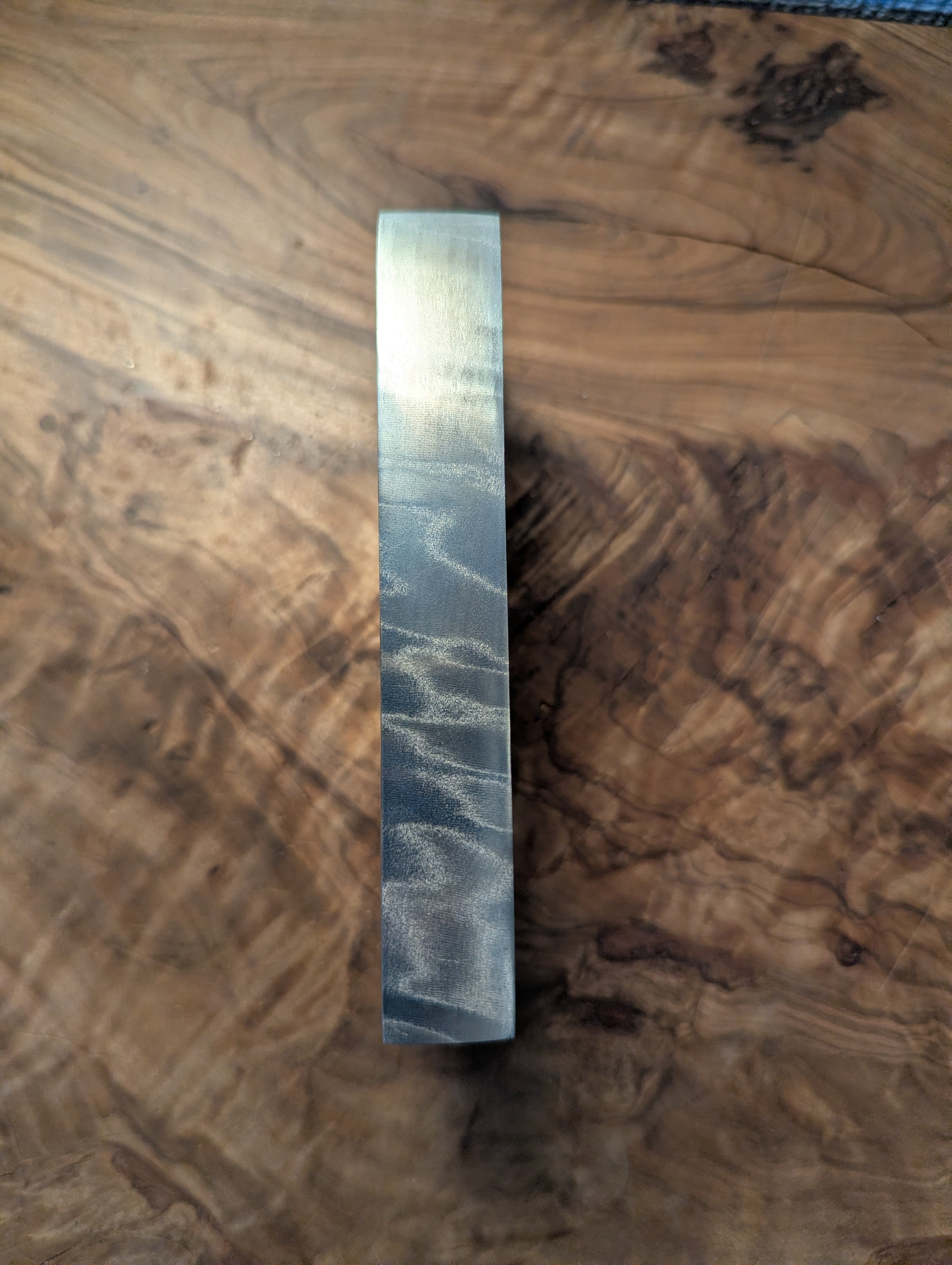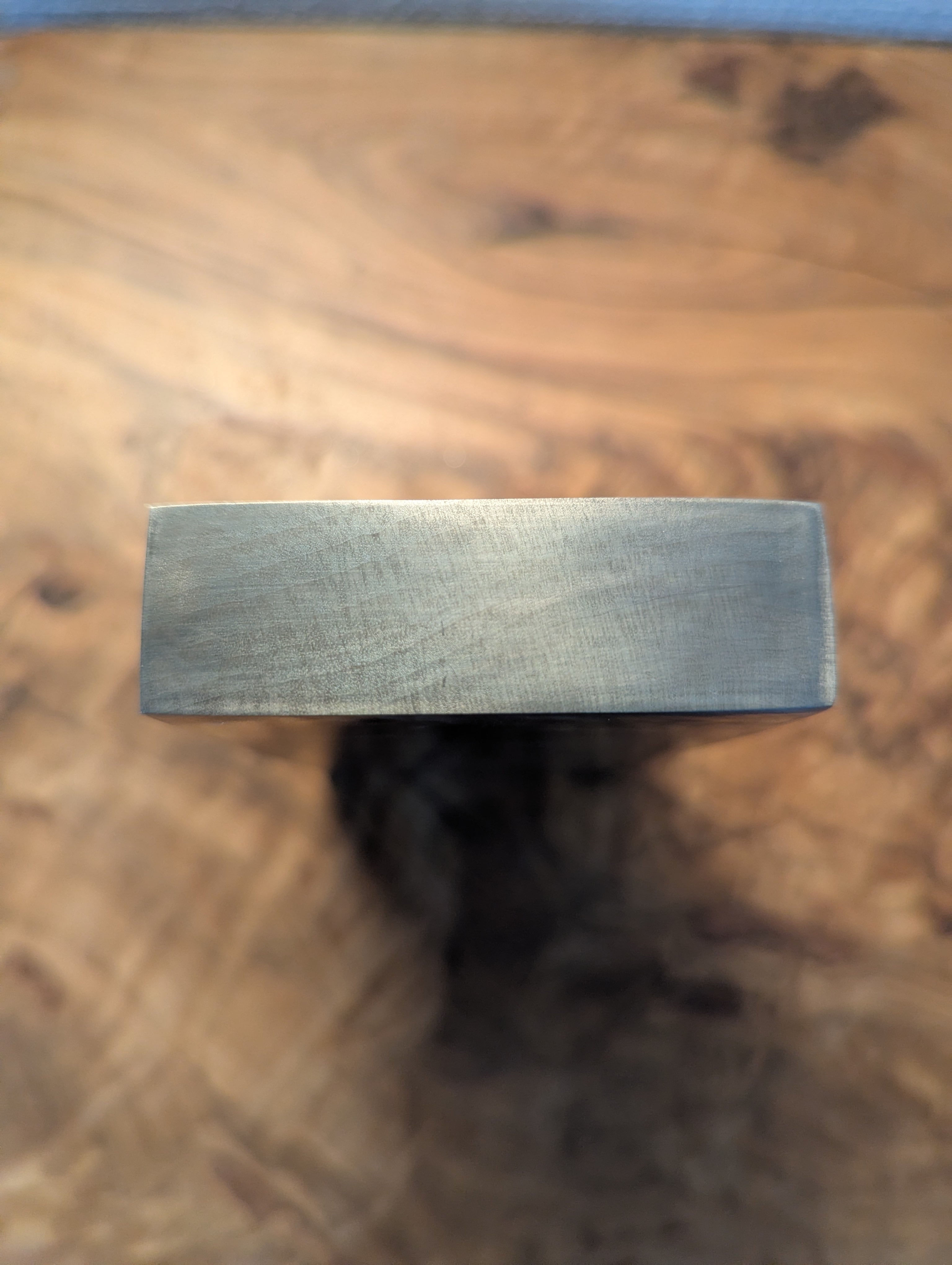 木材(トチ)に金属を含浸させた材料です。木目と杢が銀色に強調されており、光を反射してギラギラとダイナミックに輝きます。