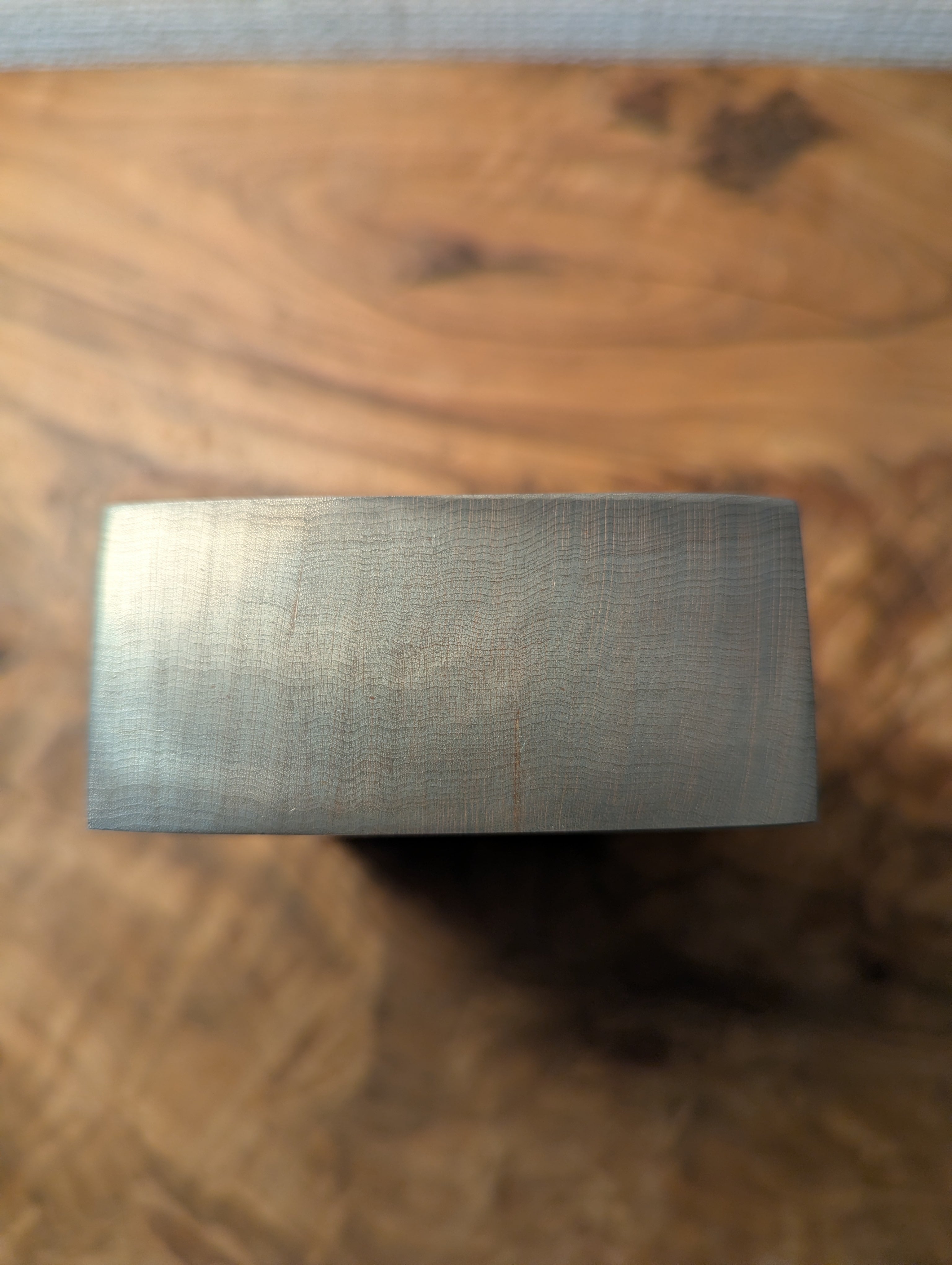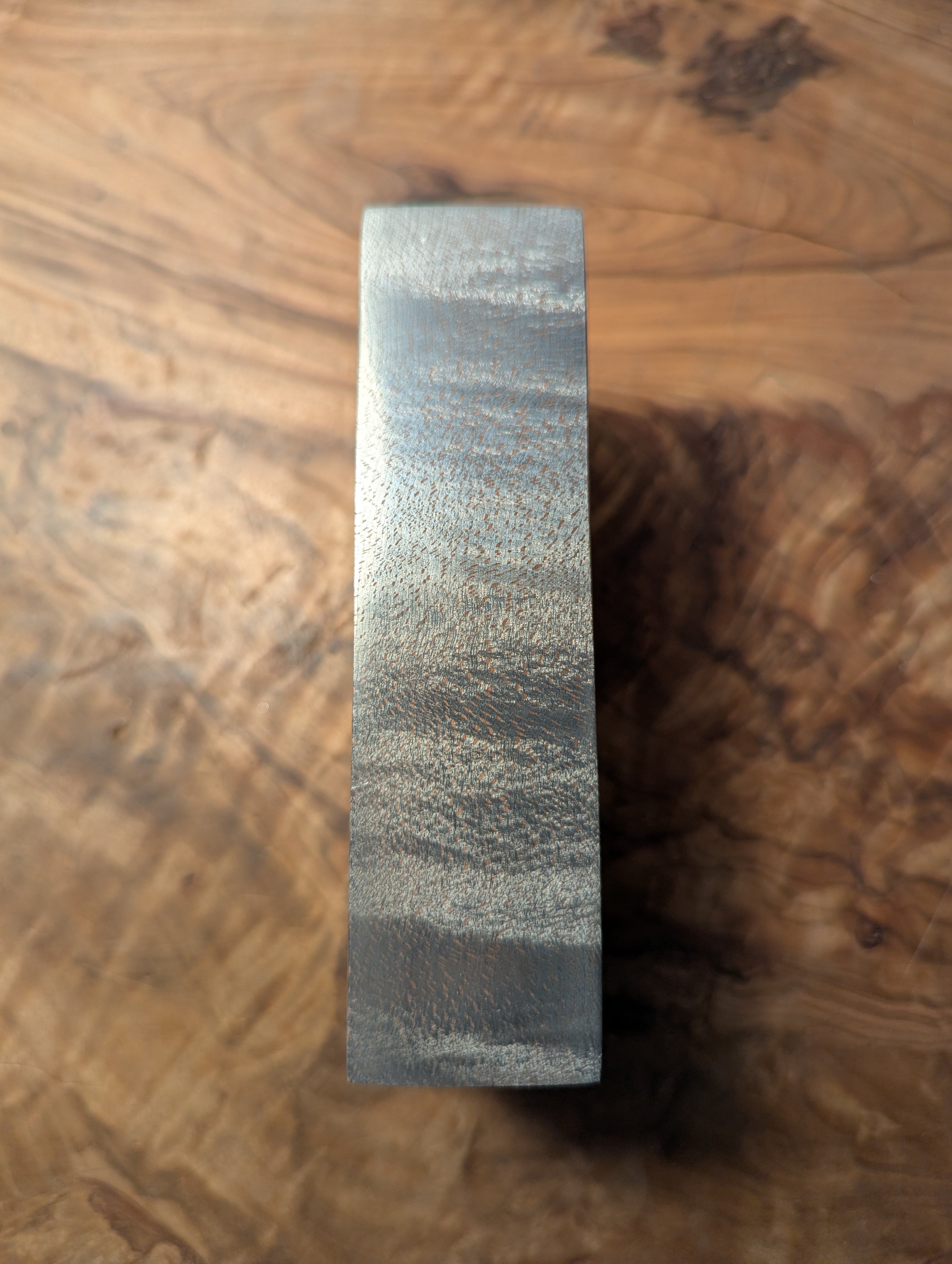 This is a material made by impregnating wood (maple) with metal. Its complex figure is metallically enhanced, reflecting light with a vivid, shimmering sparkle.
